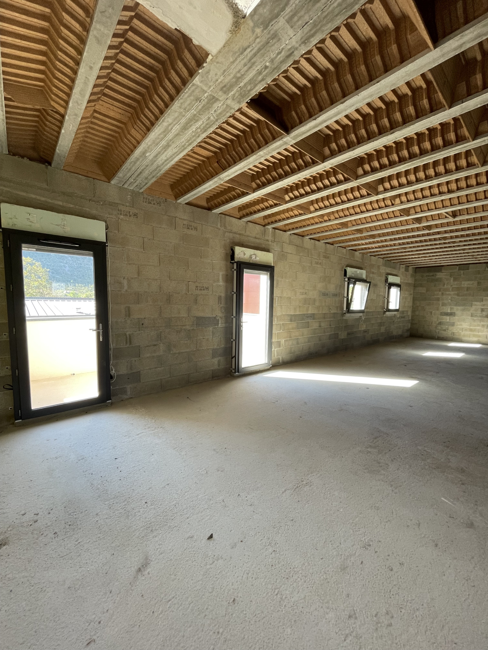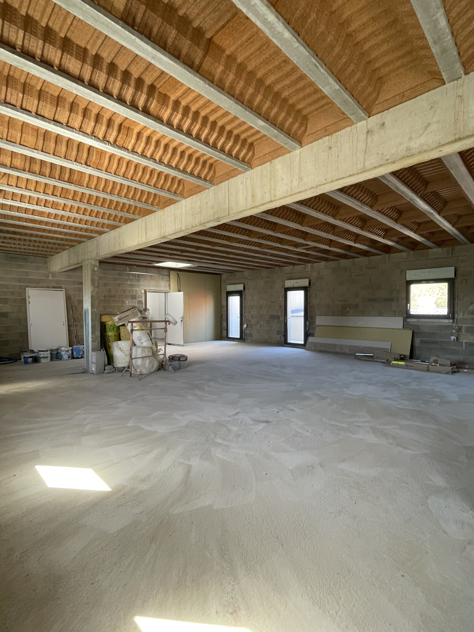 Bureaux loués hors d'eau hors d'air avec doublage des murs et plafond fait.