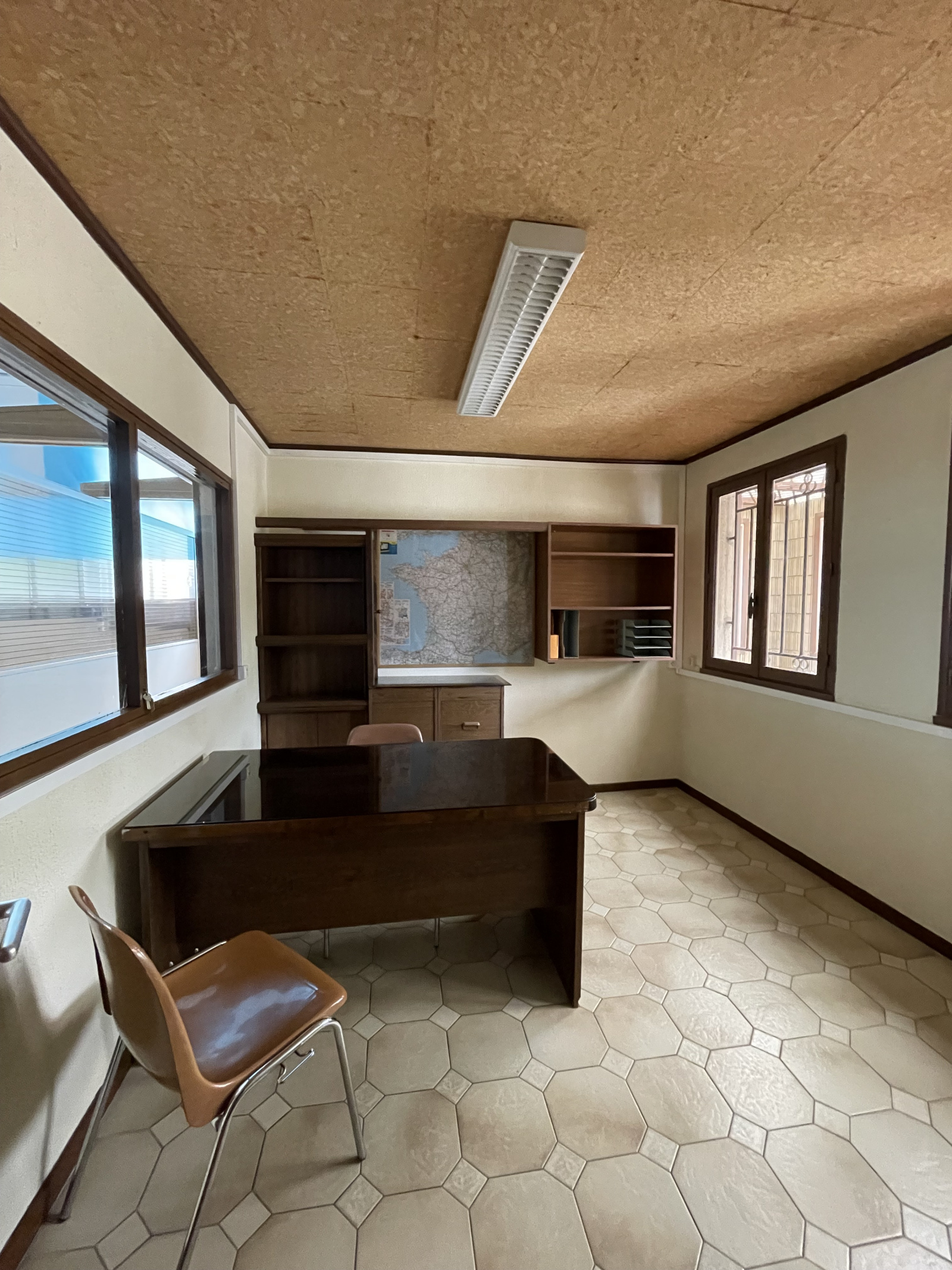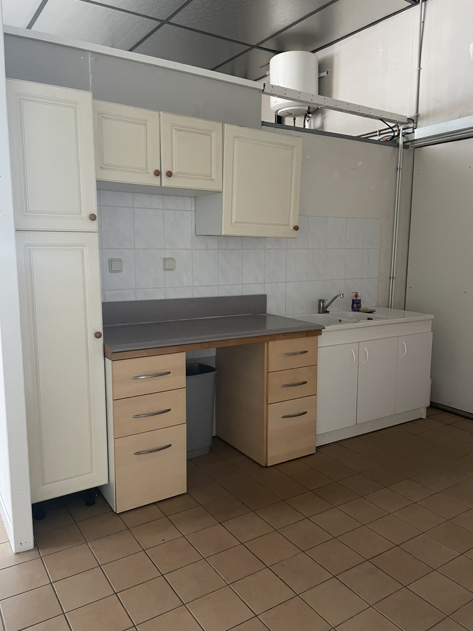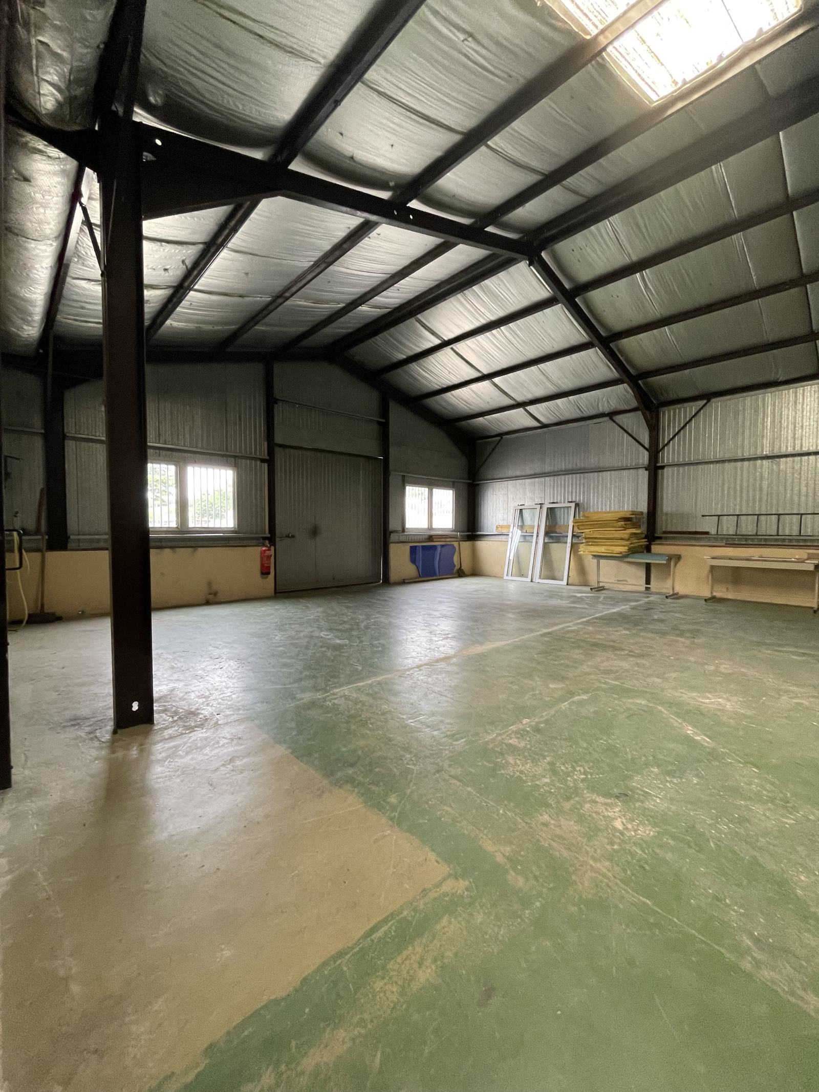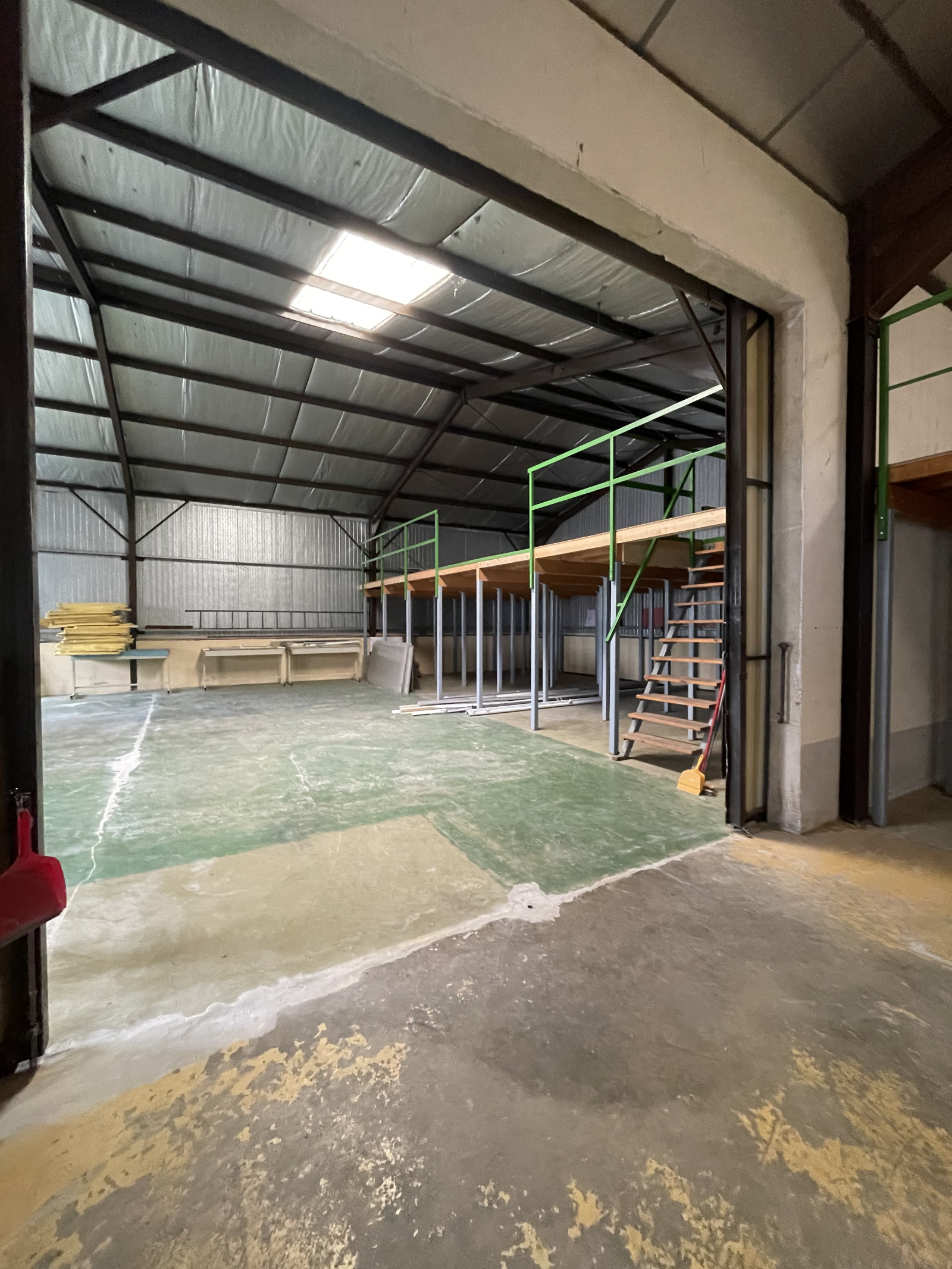 Le local se compose de 400m² comprenant d'une entrée, une partie bureau, des sanitaires, une cuisine aménagée, un dépôt carrelé et chauffé et 350m² de stockage + 150m² supplémentaire en mezzanine.
