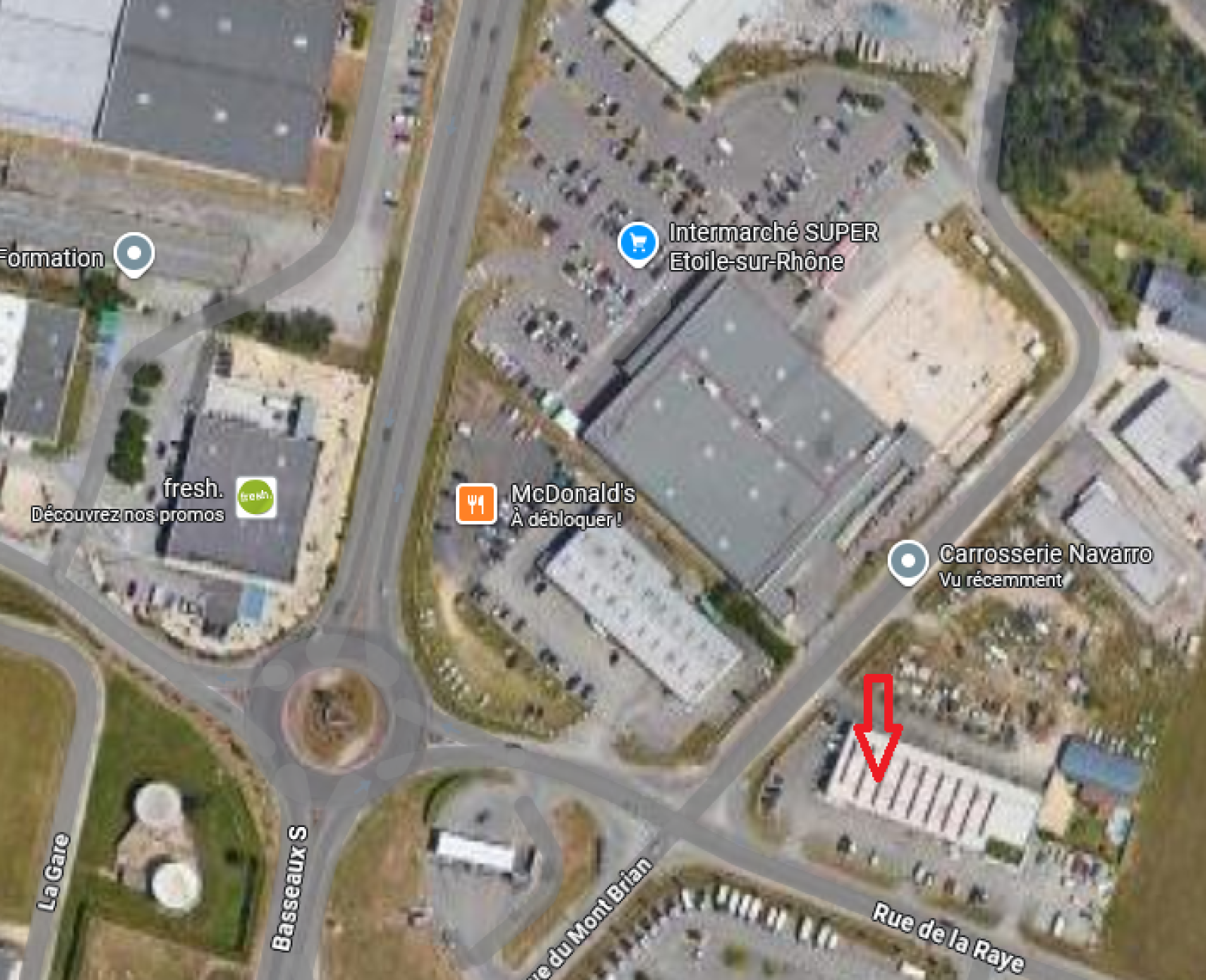 Étoile-sur-Rhône (26800)Bel emplacement bénéficiant d'une très bonne visibilité, forte fréquentation automobiles, abord immédiat de grandes enseignes et d'un supermarché, local à usage commercial de 200m² avec parking cloturé et portail.