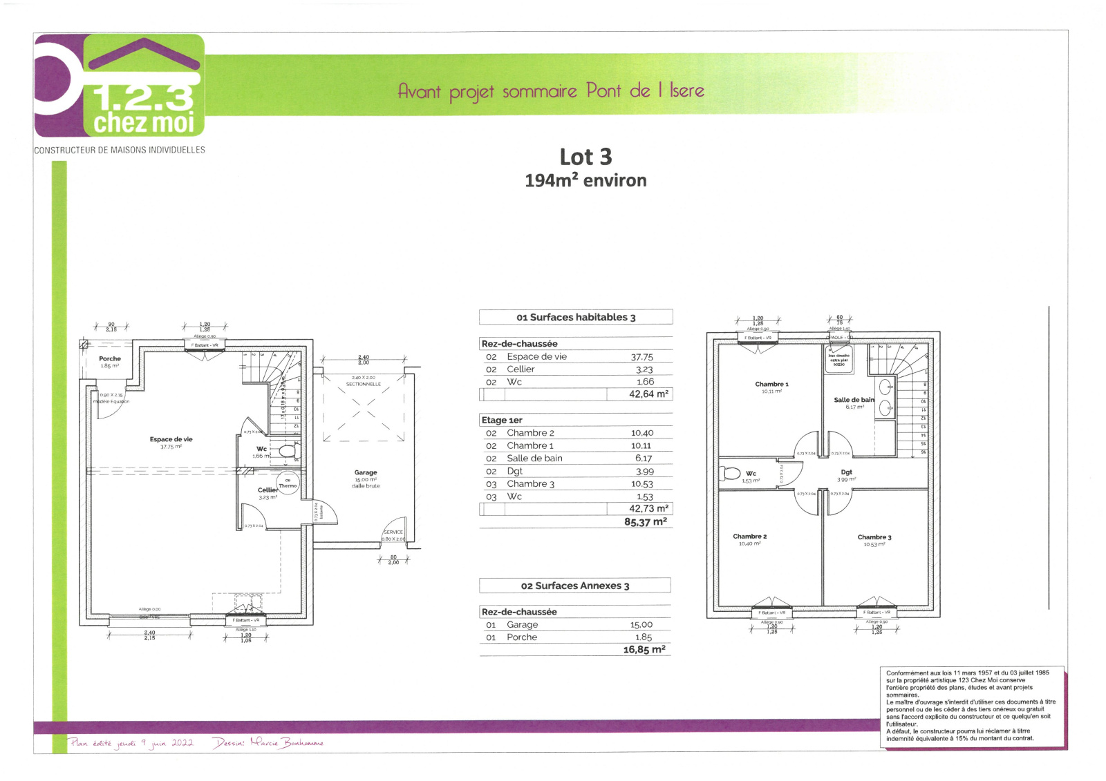 PONT DE L'ISERE. Programme de 5 villas neuves.