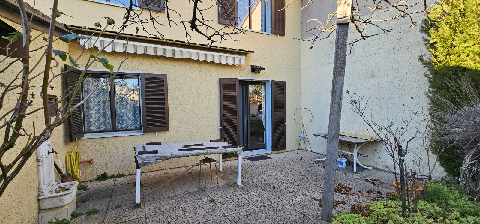 Portes-lès-Valence (26800)Au coeur d'un quartier résidentiel et calme, vous disposerez au rez-de-chaussée d'une entrée desservant un salon/salle à manger avec cheminée insert, une cuisine séparée, toilette indépendant et une partie dégagement avec placard.