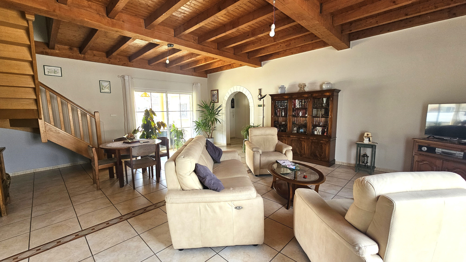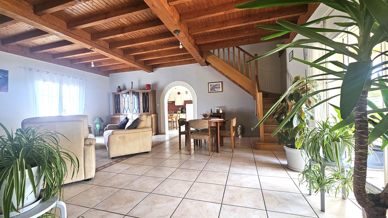 Vous disposerez en Rez-de-chaussée d'un grand séjour/SAM de 45m2, cuisine d'environ 15m2, le tout orienté sur une terrasse couverte.