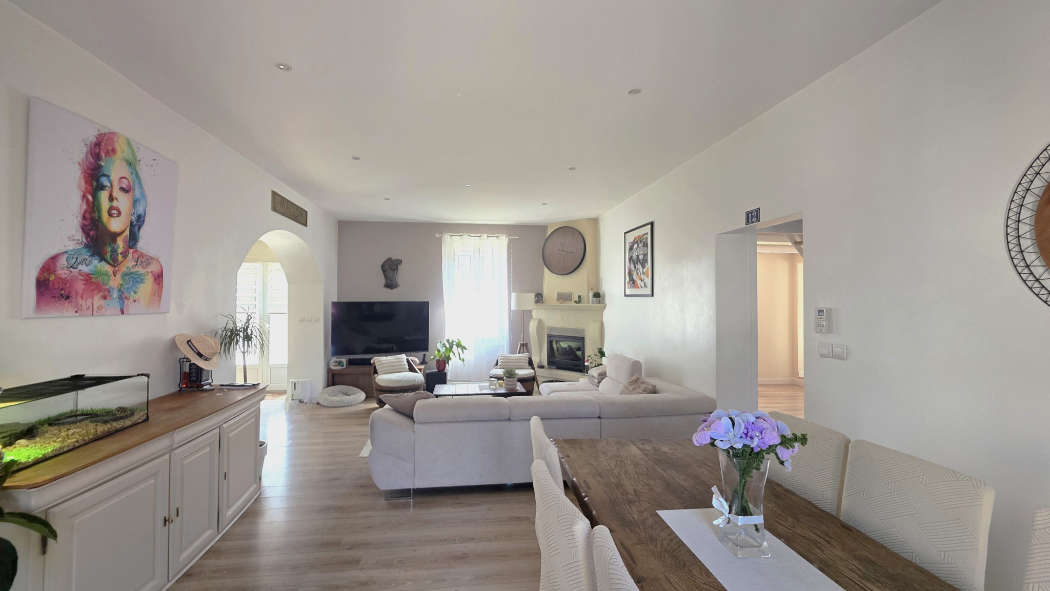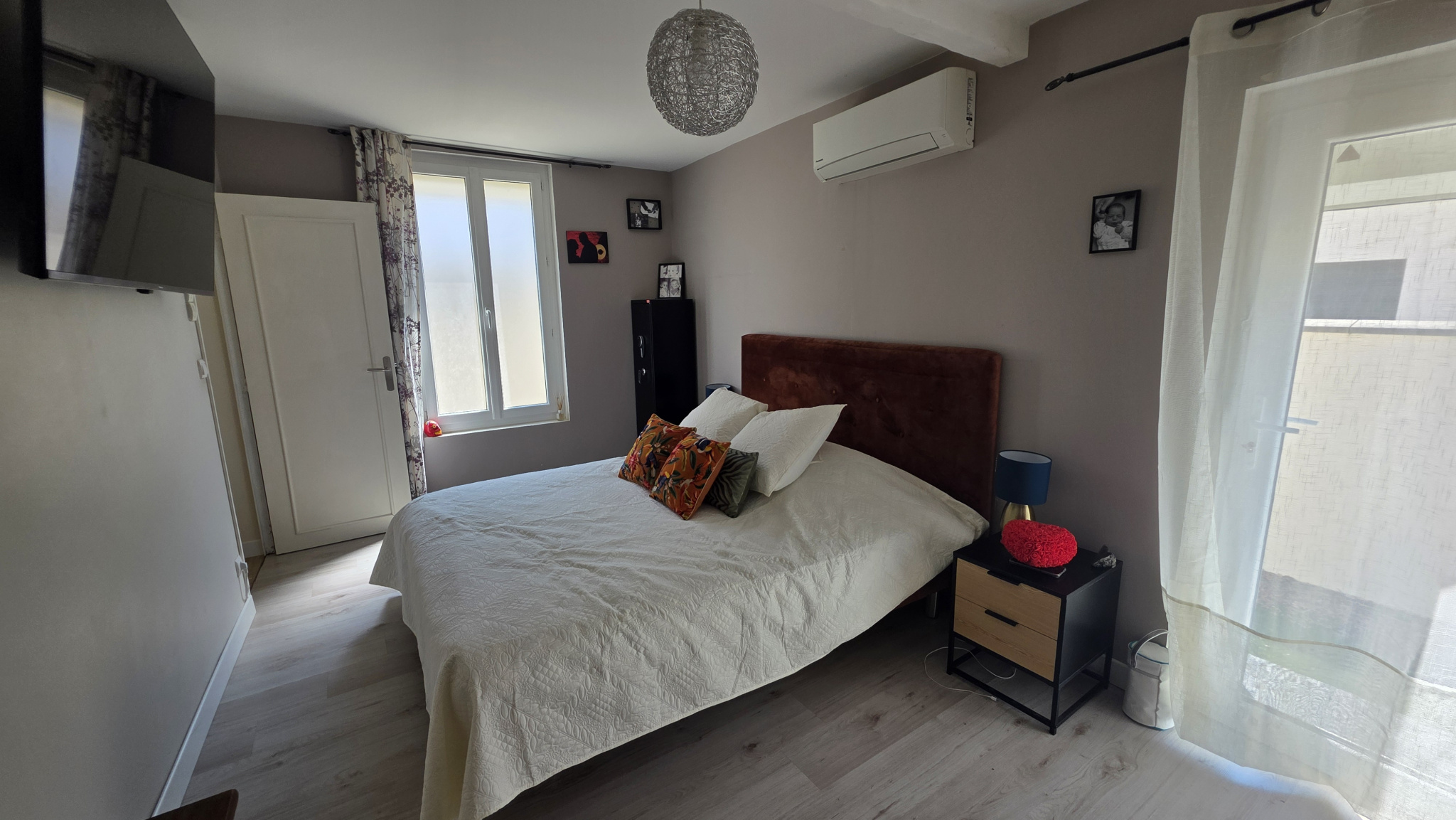 Le chauffage est alimenté par une climatisation réversible et un insert bois.