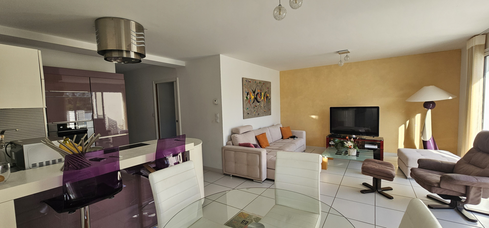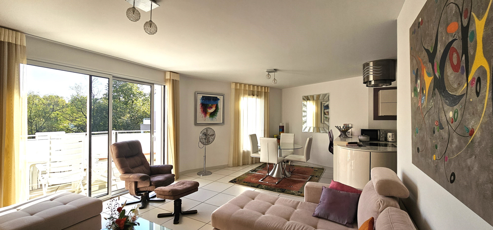 Vous disposerez d'une grande pièce de vie avec cuisine équipée ouverte sur séjour/salle à manger et orientée par deux grandes baies vitrées sur une terrasse de 18,50m2.