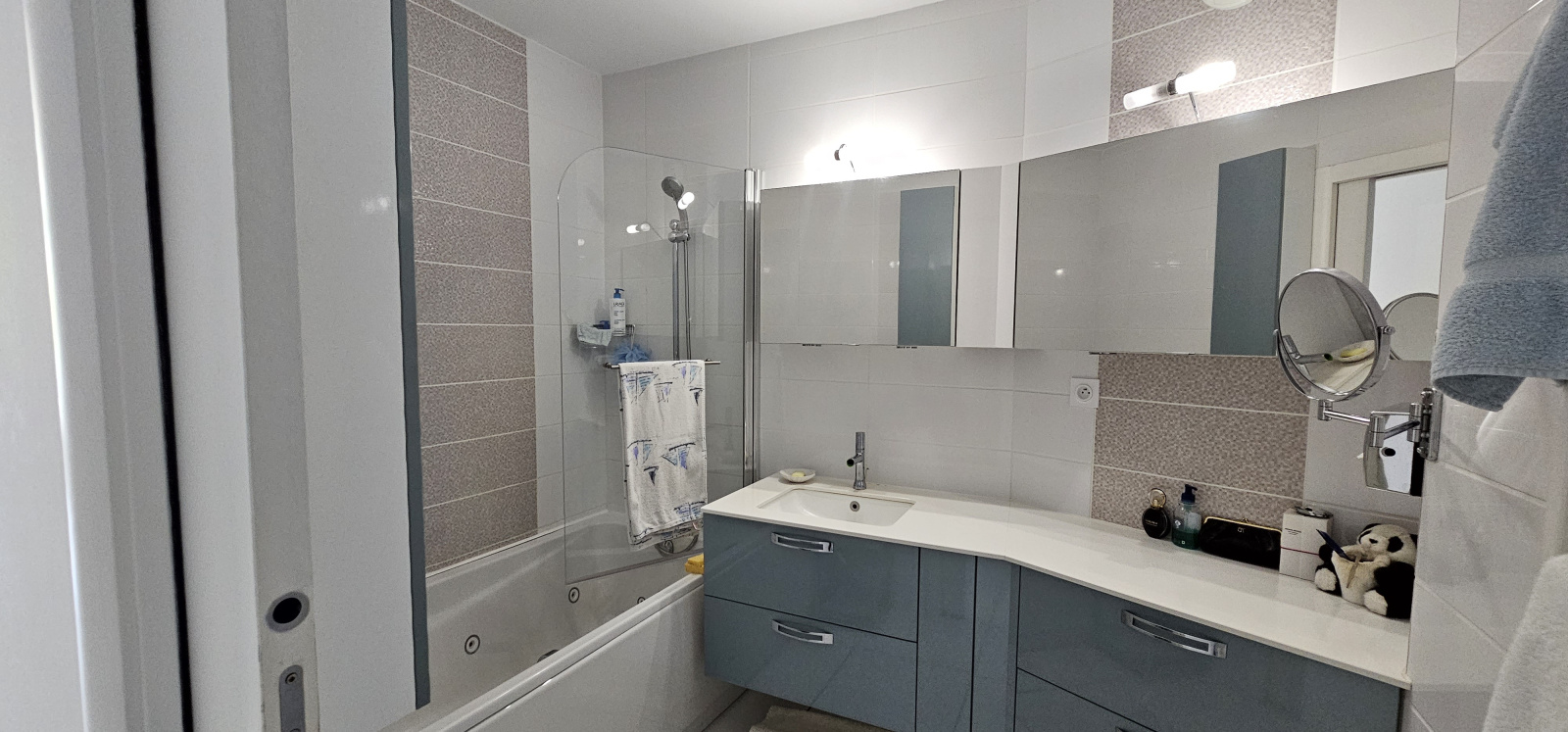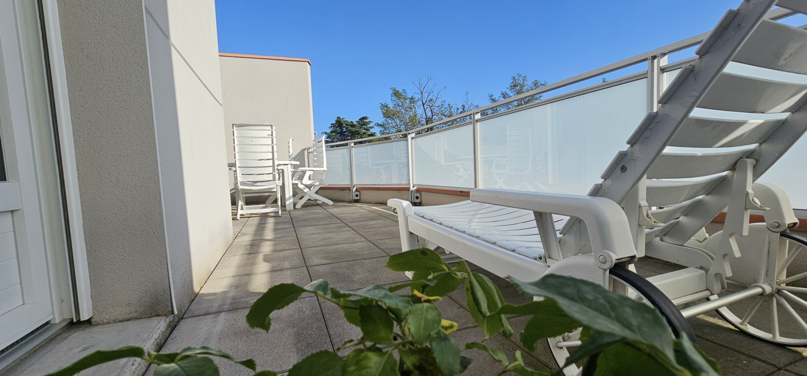 Deux chambres avec placard, salle de bain avec baignoire balnéo, buanderie avec balcon et toilette indépendant.