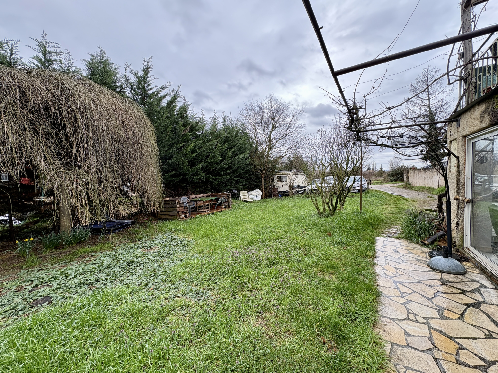 Charmes-sur-Rhône (07800)Au coeur d'un environnement verdoyant au bout d'un chemin , situé au Rez-de-chaussée d'une maison comprenant trois lots.
