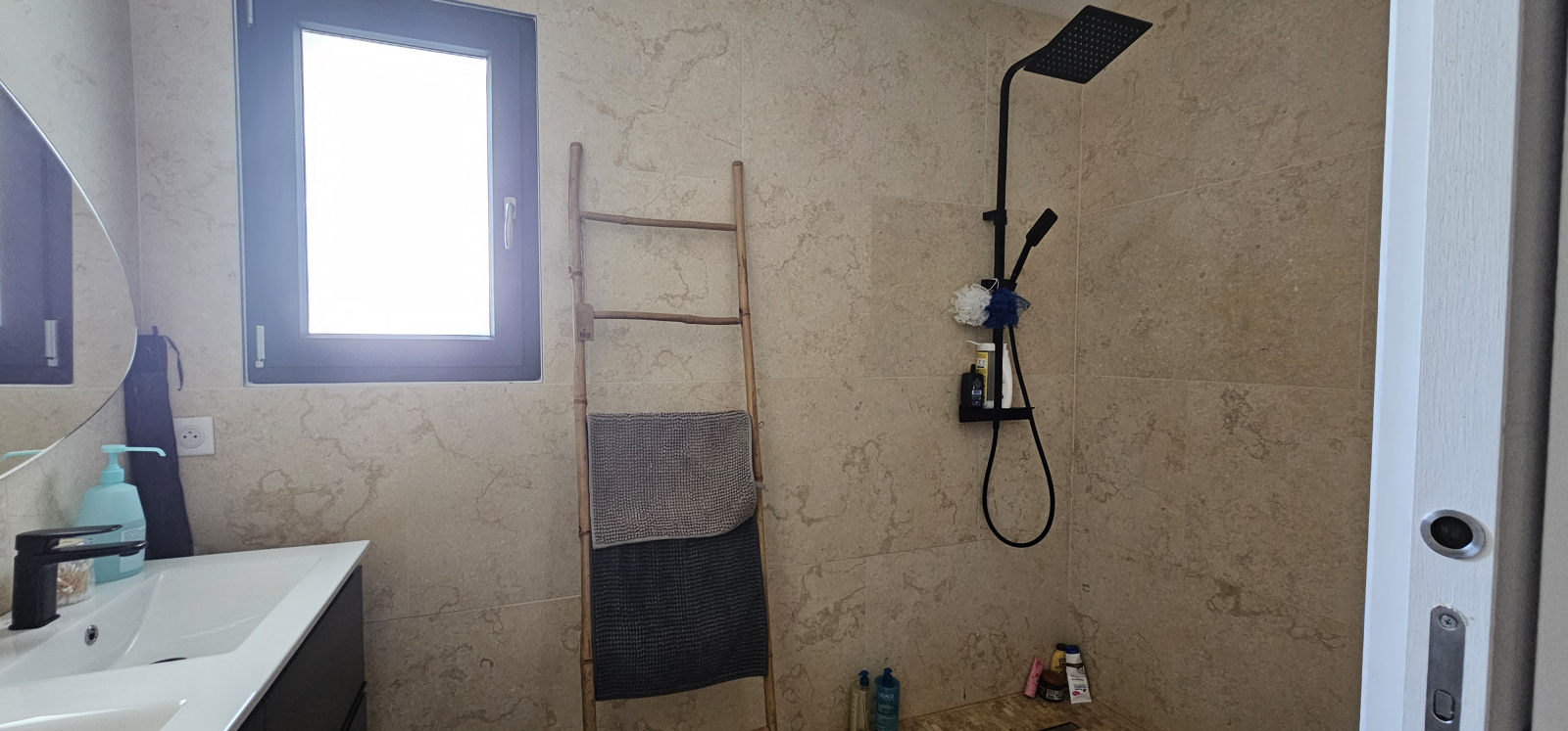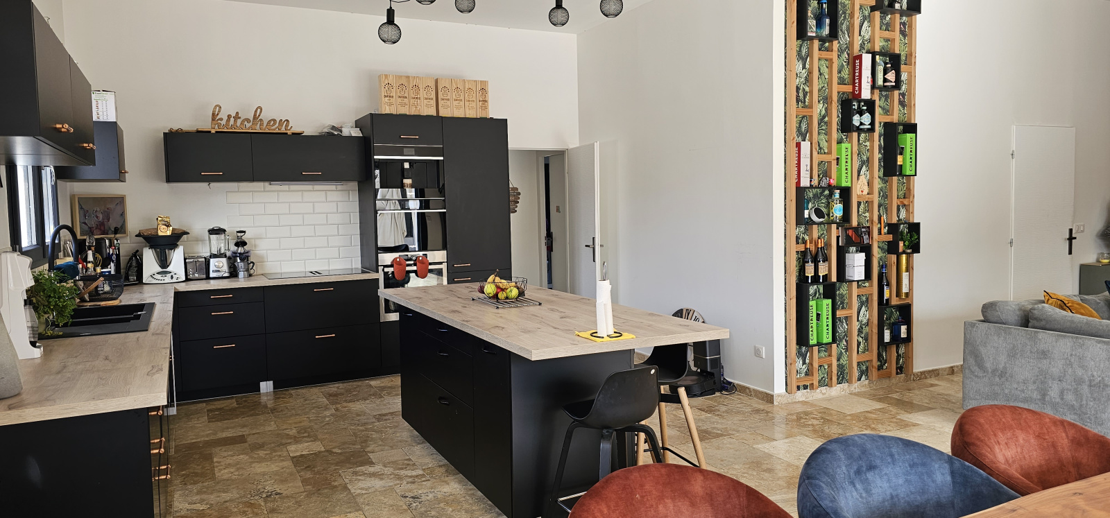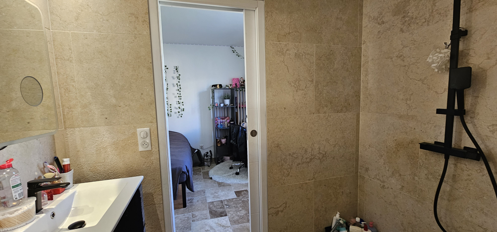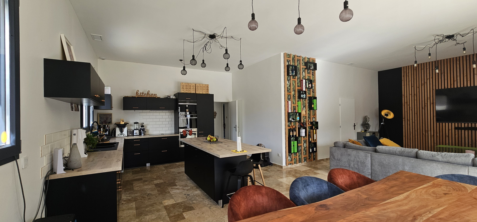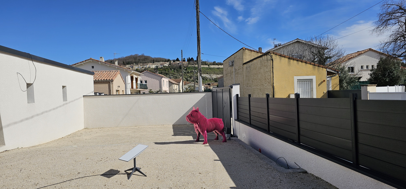 Livron-sur-Drôme (26250)Proche de toutes commodités, vous aprécierez d'avoir une grande pièce de vie de 69m2 avec cuisine équipée ouverte sur séjour /salle à manger et orientée par une grande baie vitrée à galandage sur une terrasse en travertin exposée Sud.