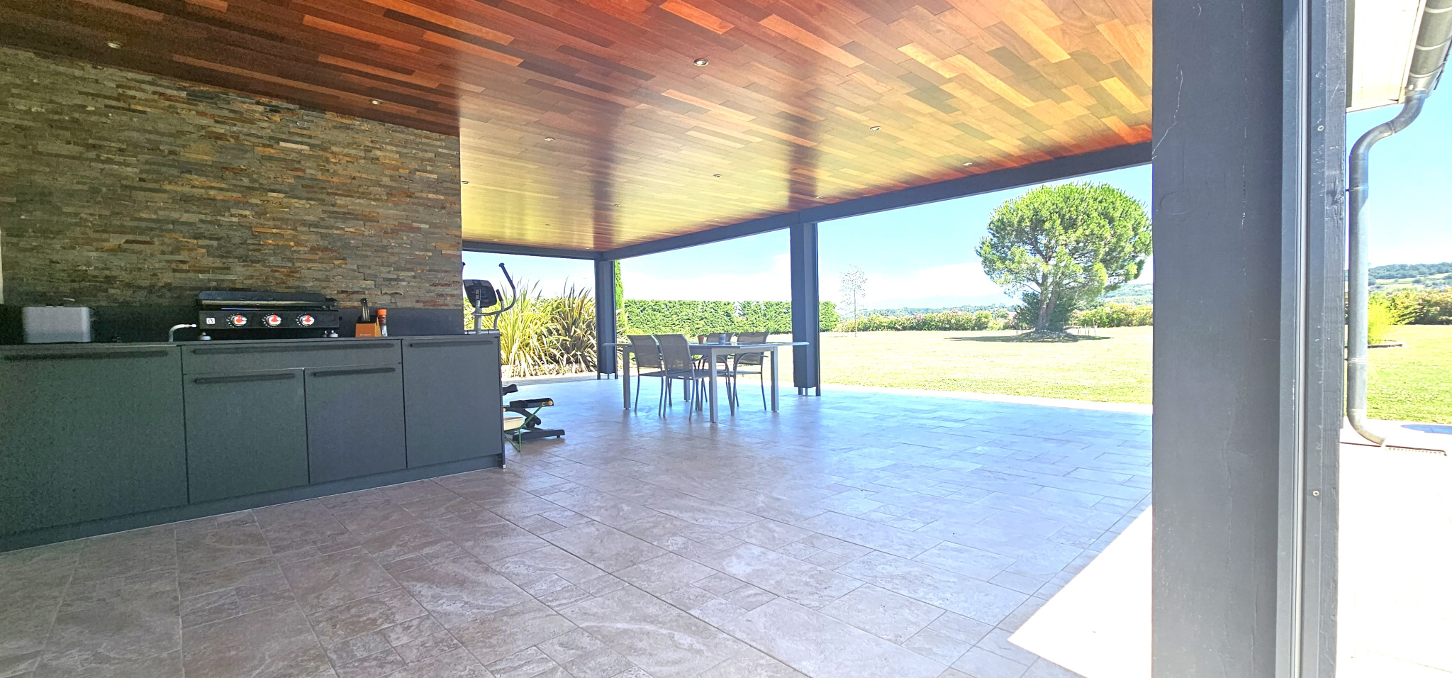 Enfin, vous apprécierez ses espaces extérieurs dont une grande terrasse couverte et équipée d'une cuisine d'été de 70m2, une cour en pavé de 700m2 et un bel espace vert avec puits, arrosage intégré et entièrement cloturé.