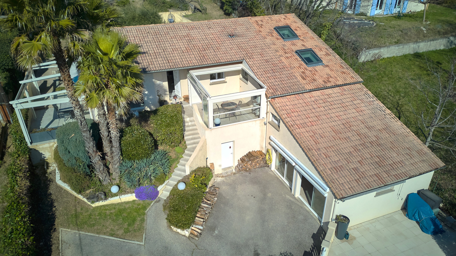 Vous profiterez également d'un double garage/cuisine d'été de 40m2 orienté par 2 grandes baies vitrées au Sud, et chambre d'appoint au-dessus.