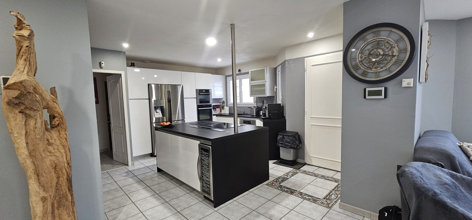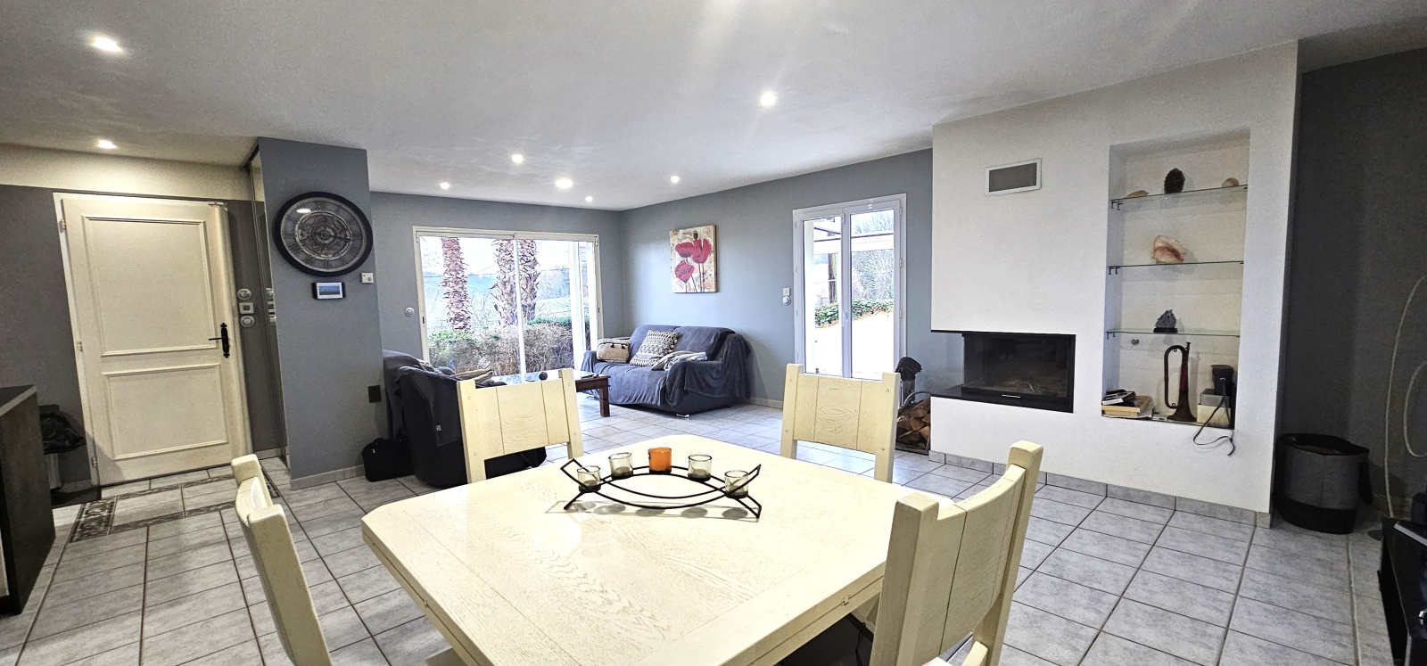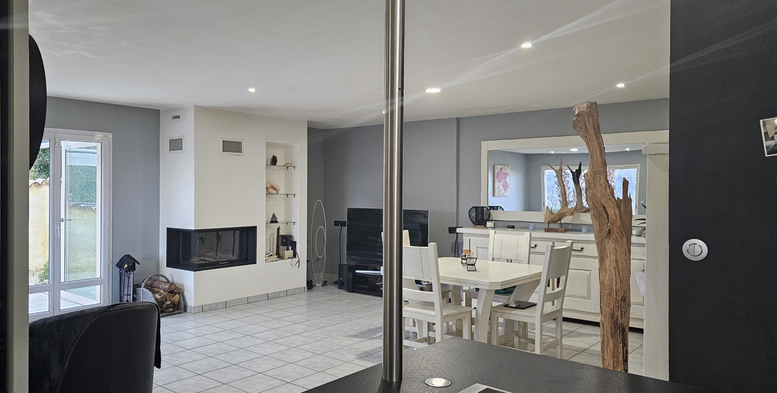 Vous disposerez d'une belle pièce de vie avec cheminée, cuisine équipée ouverte sur séjour, et orientée sur deux pergolas à l'Est et au Sud.